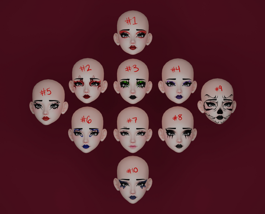 - 10 different makeup textures for INDIVIDUAL SALE! IF YOU WANT THE WHOLE PACK, PLEASE BUY FROM THIS LINK! (IT IS CHEAPER IF YOU PURCHASE THEM ALL TOGETHER) https://unwaivera.gumroad.com/l/ttnxed